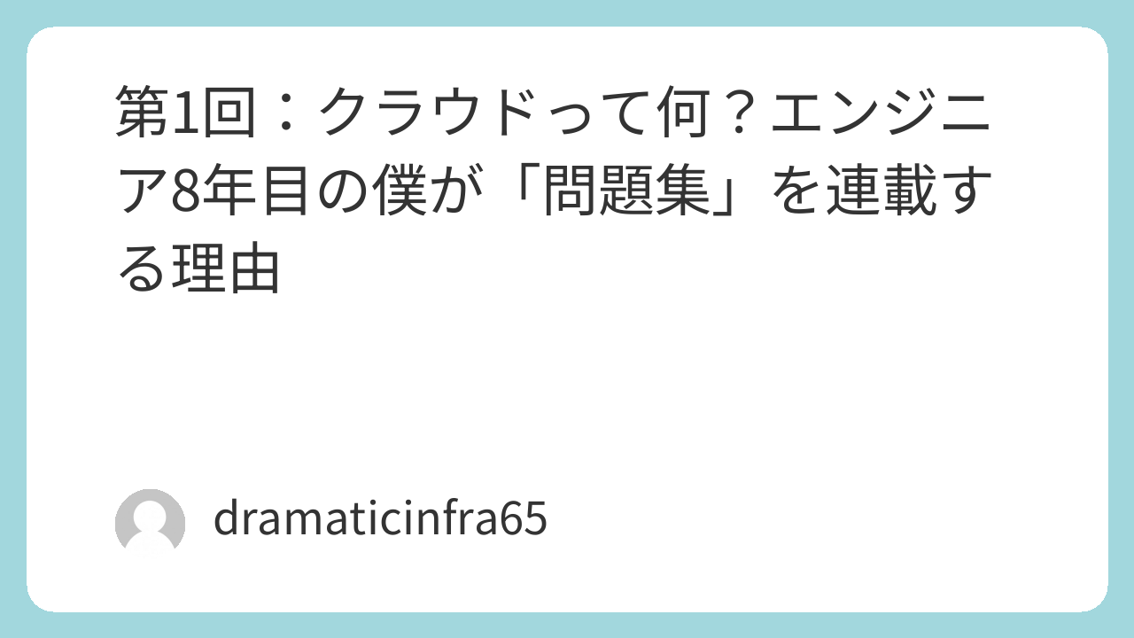 以前、このブログは「投資2割、日常6割、技術2割」で書くとお伝えしていましたが、これから約8回分は「技術(クラウドインフラ)」に100%全振りして投稿していきます!